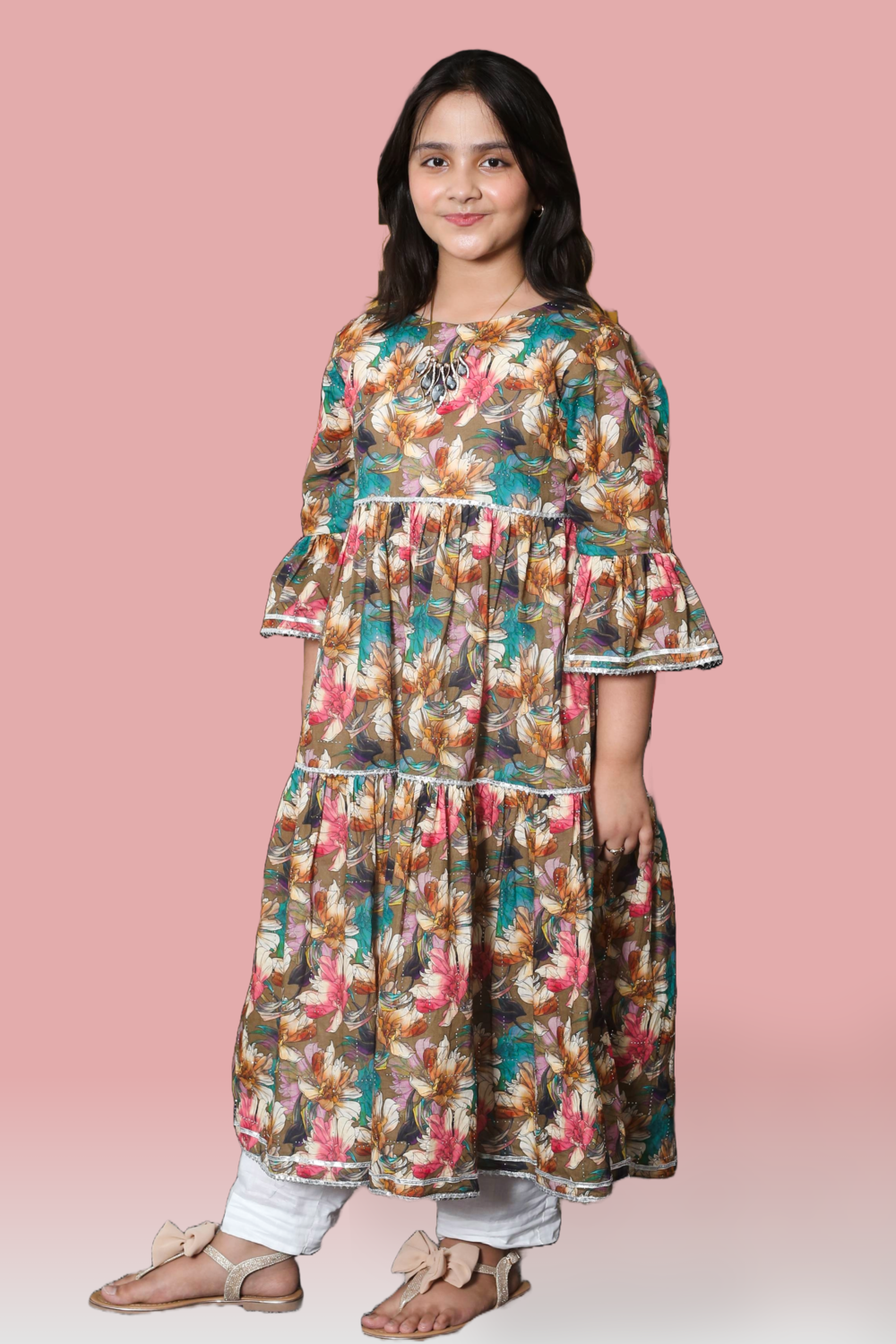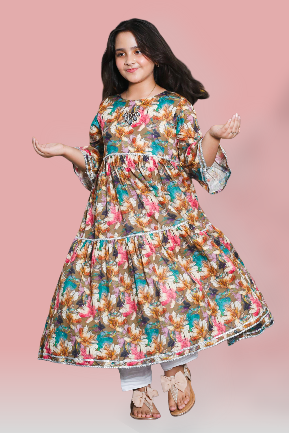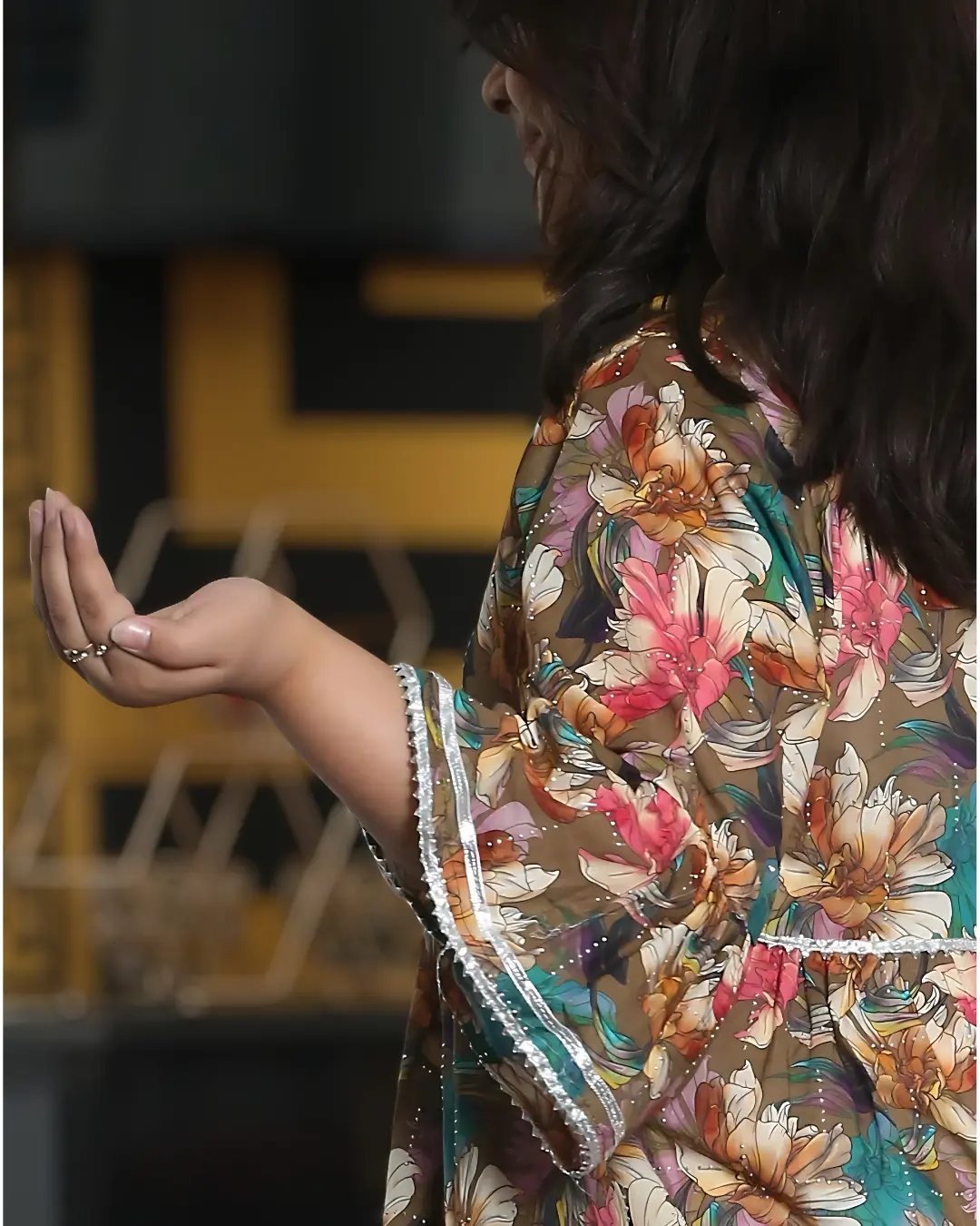Step into timeless charm with our Long Flared Frock, crafted from premium Airjet Mukaish Cotton. The soft, breathable fabric ensures comfort, while the subtle mukaish detailing adds a touch of traditional elegance. Perfect for festive gatherings or daytime events, this frock blends effortless grace with understated sophistication.